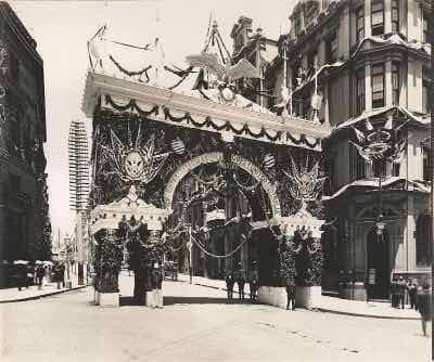 Democratic nations around the world celebrated the Federation of Australia in 1901. This photo shows the United States’ Federation Arch, a temporary structure, which was organised, built and funded by members of the American expatriate and business community in Sydney.