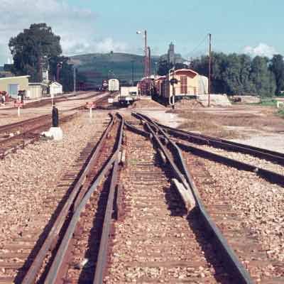 Three gauges in one: Gladstone, South Australia. The four rails in the foreground include one rail that is common to all three gauges (the rail on the right).