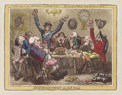 The Anacreontic Society sing the Anacreontic Song in 1770s, by James Gillray, 1801.
