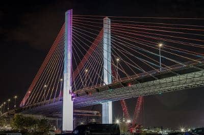A rejuvenated Kosciuszko Bridge in 2018— with construction crew still working on the second set of towers.