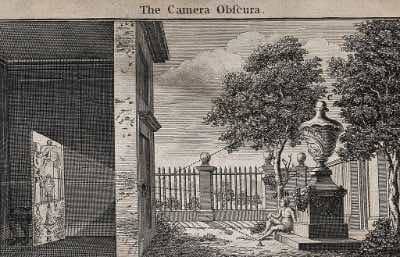 Engraving showing the principle of the camera obscura.