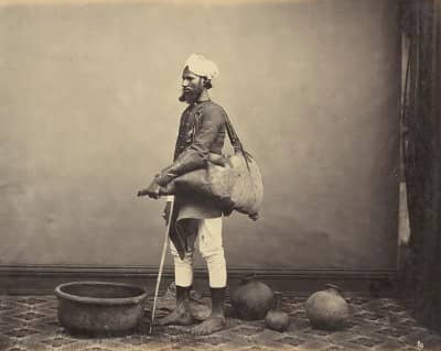 Photograph of a North India water-carrier, a ‘bhishti’, mid-19th century.